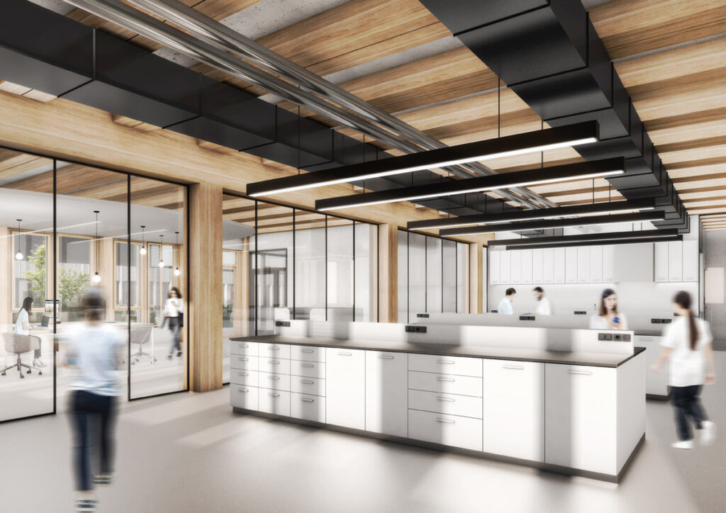Neubau von Labor- und Bürogebäude rund um ehemalige Militärkrankenhaus um ein Forschungs- und Innovations Campus zu entstanden.